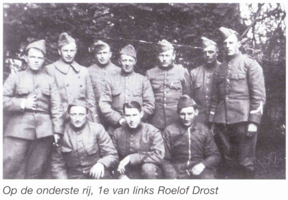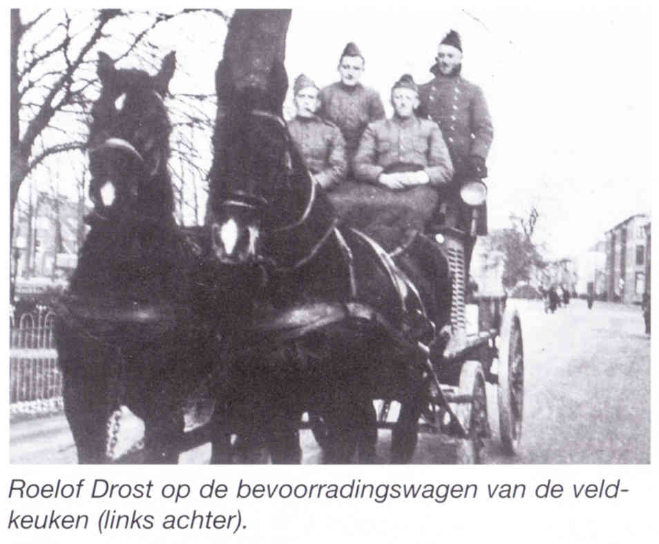 Roelof heeft zijn dienstplicht vervuld in 1930. Als op 28 augustus 1939 de mobilisatie wordt afgekondigd, worden alle lichtingen vanaf 1923 opgeroepen voor militaire dienst, dus ook Roelof. Hij wordt ingedeeld in het derde bataljon van het negentiende Regiment Infanterie, 111-19 RI. Roelof weet niet meer in welke compagnie, maar hij was paardenmenner bij de keukenwagen. Wat het eten betreft zat hij dus op de goede plek.